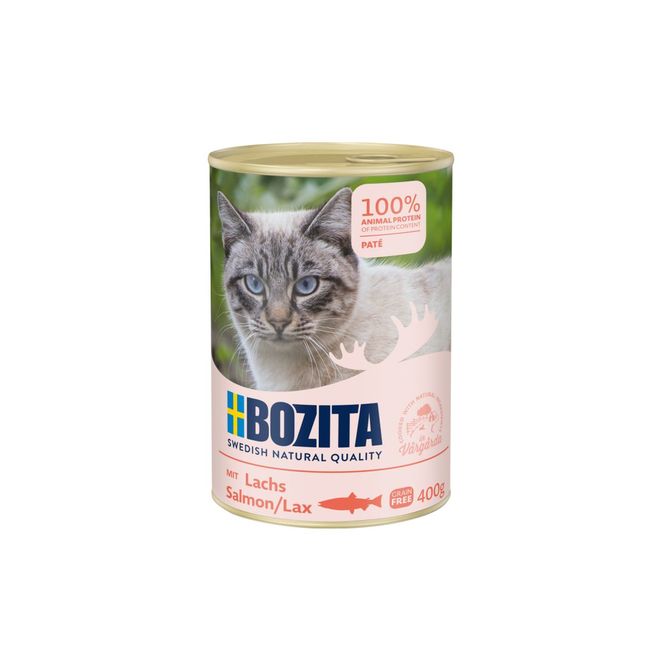 BOZITA mus dla kota z Łososiem to kompletne danie, które całkowicie zaspokaja potrzeby żywieniowe dorosłych kotów.