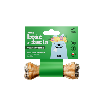 Azanki Kość do żucia w skórze wołowej ze skórą kozią, miętą, dziką różą i nagietkiem (S/M 12cm/55g)